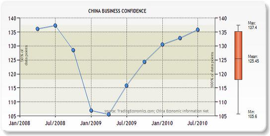 Chinese stringent policies made the real estate to cut back its growth by almost 60%.This might shock any nation since fall of 6o% in prices will lead to slow growth of the economy and another instance of sub-prime mortgage failures. China is very much well prepared in its policy frame work. Chinese regulators are demanding that the nation’s banks undergo stress tests which include being able to survive a 60% fall in house prices. Despite of such a dramatic plummeting the business confidence level among the Chinese economy is climbing very high and showing sign of more growth to come in coming years. The below chart shows the Chinese business confidence. This shows that how they are making their own test within the good time frame work so as not to make their economy face any hard days and nights.