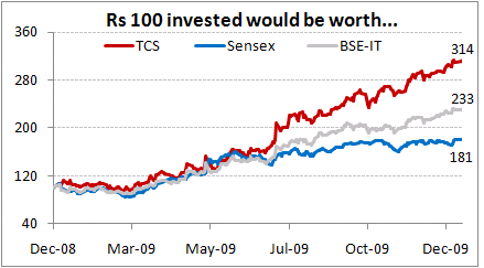 Tata Consultancy Services Limited (Returns in – 2008: -56%, 2009: 214%)