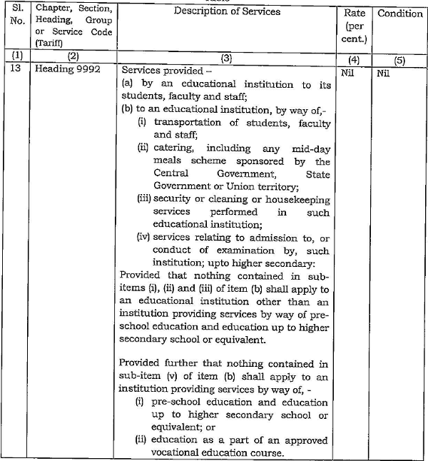 In In re K.L.N. Sourashtra College of Engineering Council (2025), the Tamil Nadu AAR held that hostel accommodation and food services provided by one charitable educational institution to another are taxable under GST. Exemption under Notification No. 12/2017-CT(R) applies only if specific conditions under Sl. No. 12A are met.