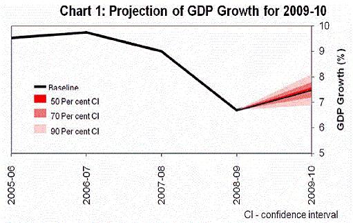 21. In the Second Quarter Review of October 2009, we had placed the baseline projection for GDP growth for 2009-10 at 6.0 per cent with an upside bias. The movements in the latest indicators of real sector activity indicate that the upside bias has materialised. Assuming a near zero growth in agricultural production and continued recovery in industrial production and services sector activity, the baseline projection for GDP growth for 2009-10 is now raised to 7.5 per cent.
